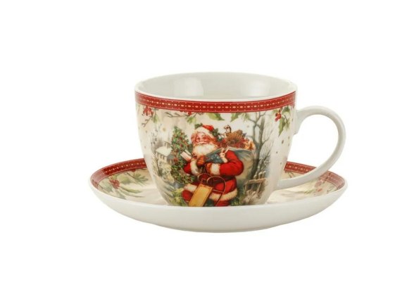 Filiżanka świąteczna 400 ml ze spodkiem 15 cm
