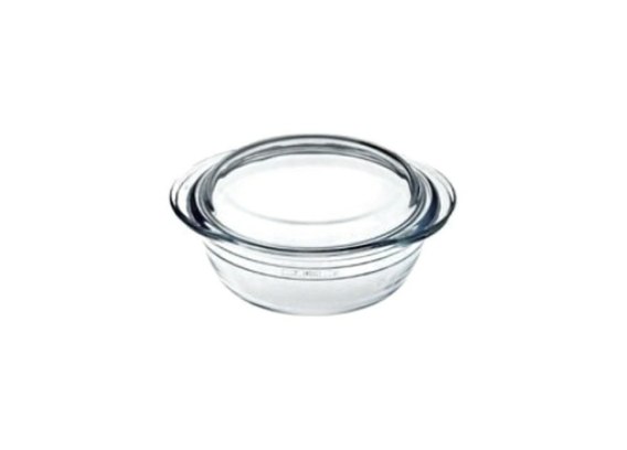 Szklane naczynie żaroodporne okrągłe z pokrywą/forma do pieczenia, zapiekania potraw w każdego rodzaju piekarnikach