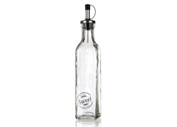 Butelka do oleju 250 ml ze wzorem SWEET HOME kwadratowego kształtu, wyprodukowana ze szkła, jest idealnym pomocnikiem w kuchni. Butelka jest wyposażona w metalowy lejek z plastikowym zaworem i uszczelką, dzięki temu praca z olejem będzie dużo łatwiejsza.