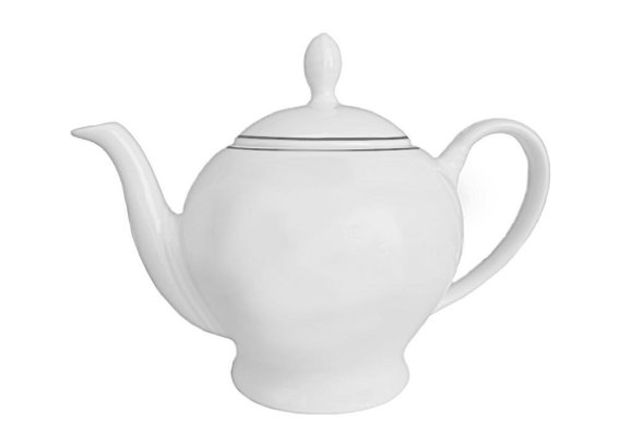 Porcelanowy czajnik z kolekcji Base Black marki Bogucice, zdobiona delikatnym czarnym paskiem na obrzeżu.