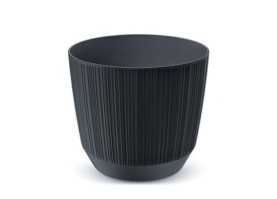 Doniczki Ryfo marki Prosperplast wykonane z wytrzymałegp tworzywa z delikatnymi, pionowymi prążkami.