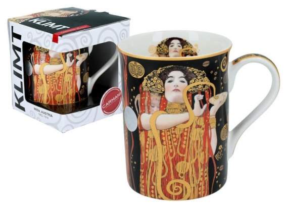 Kubek z serii Gustav Klimt, zdobiony motywem Medycyna, idealny do herbaty lub kawy. Ładnie zapakowany, będzie wspaniałym prezentem dla każdego miłośnika sztuki.