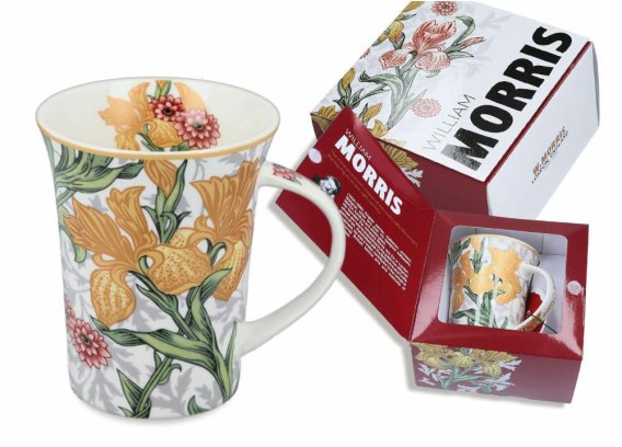 Kubek z klekcji Wiliam Morris, zdobiony motywem kwiatowych.