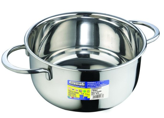 Trzywarstwowe dno (stal 18/10 + aluminium+ stal 18/0) umożliwia równomierne rozprowadzanie ciepła.