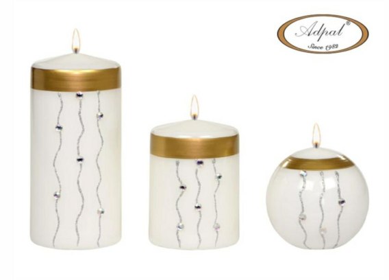 Ozdobna świeca pieńkowa Golg Ring lakier Biała
